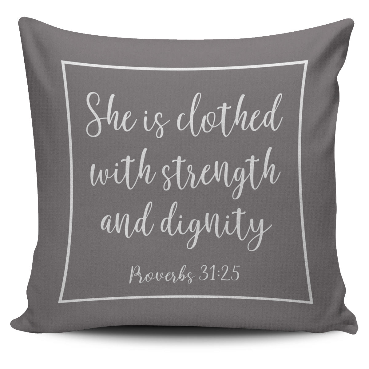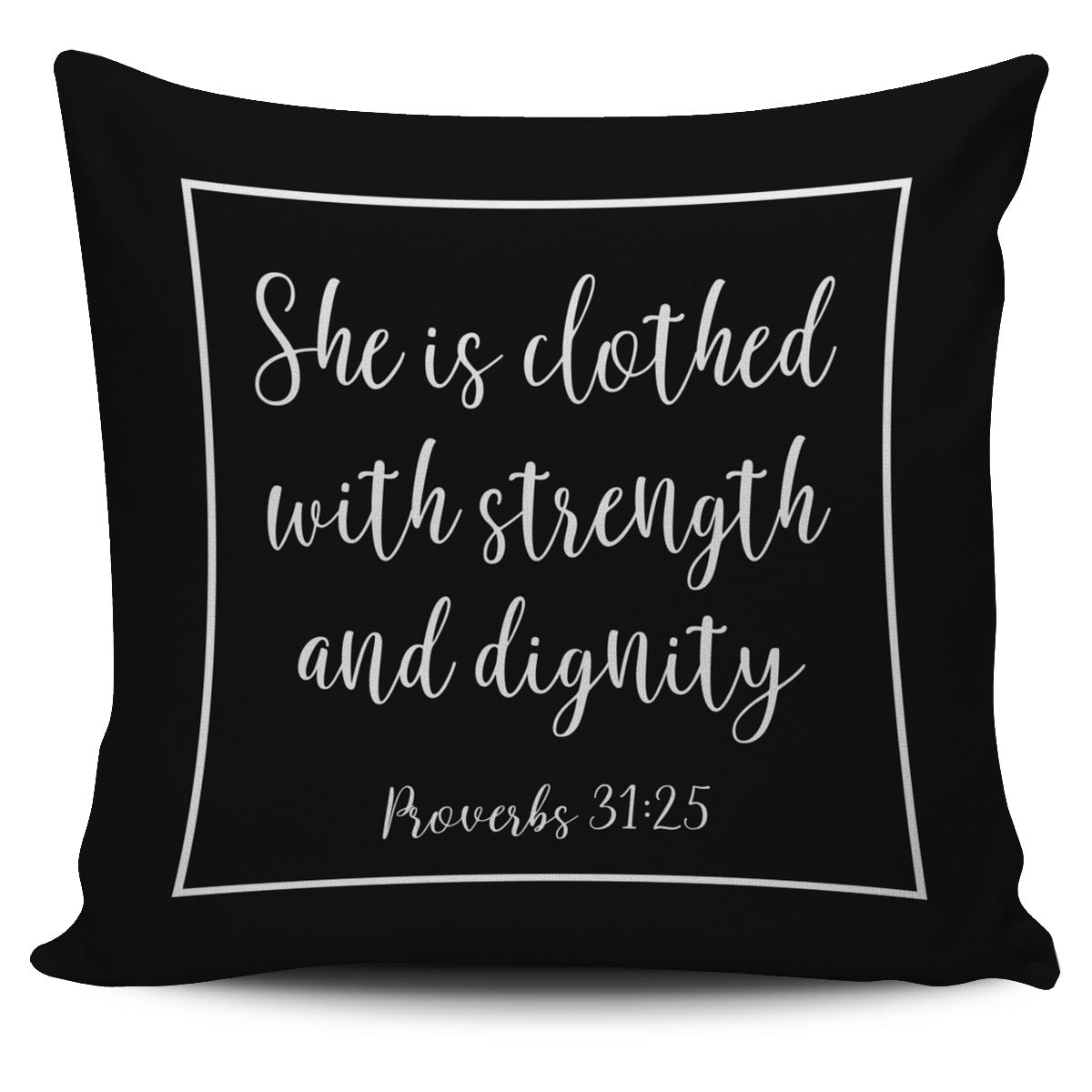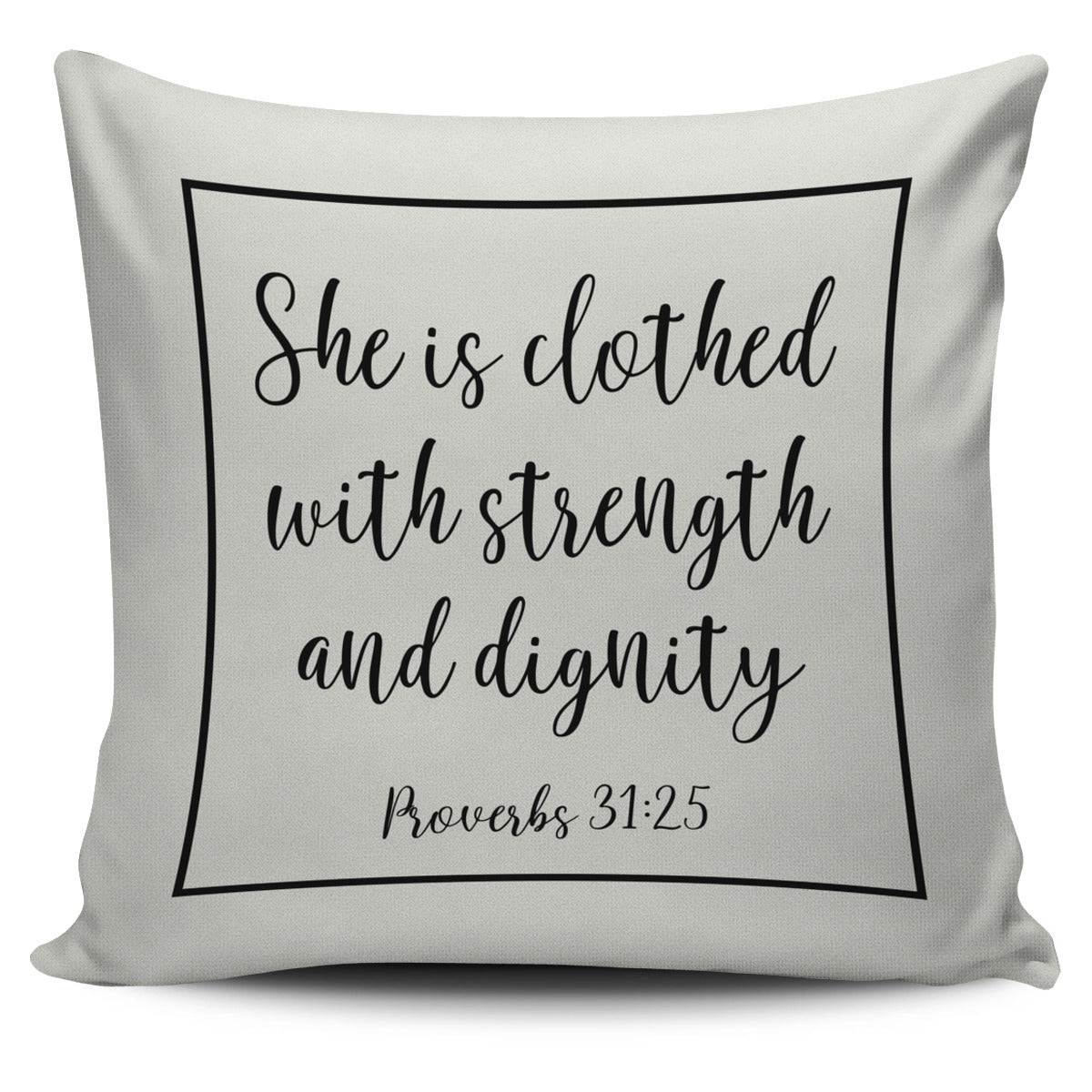 SHE IS CLOTHED WITH STRENGTH AND DIGNITY THROW PILLOW COVER