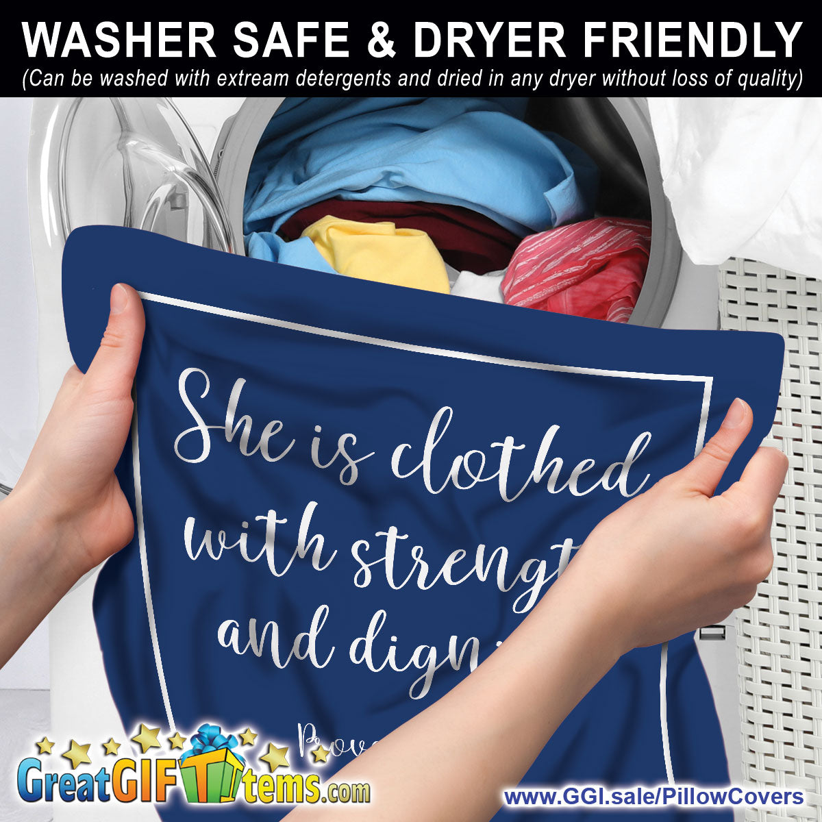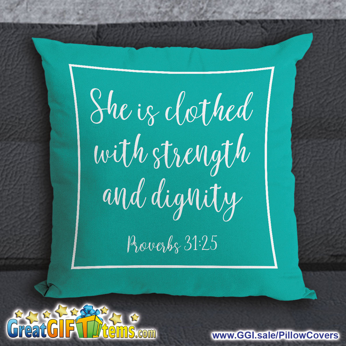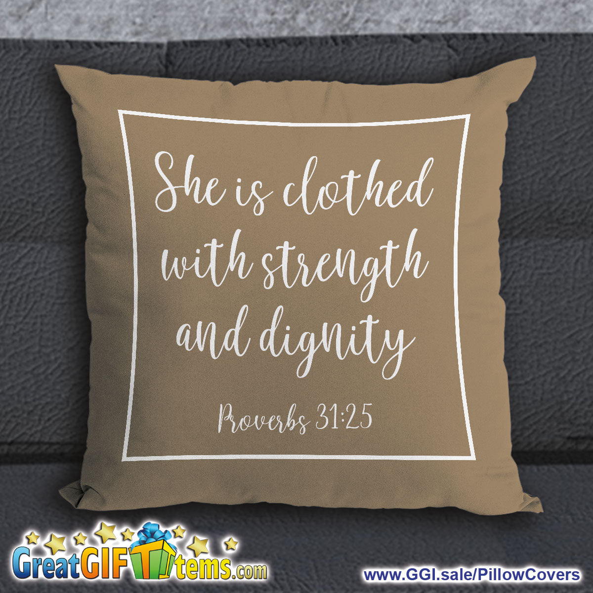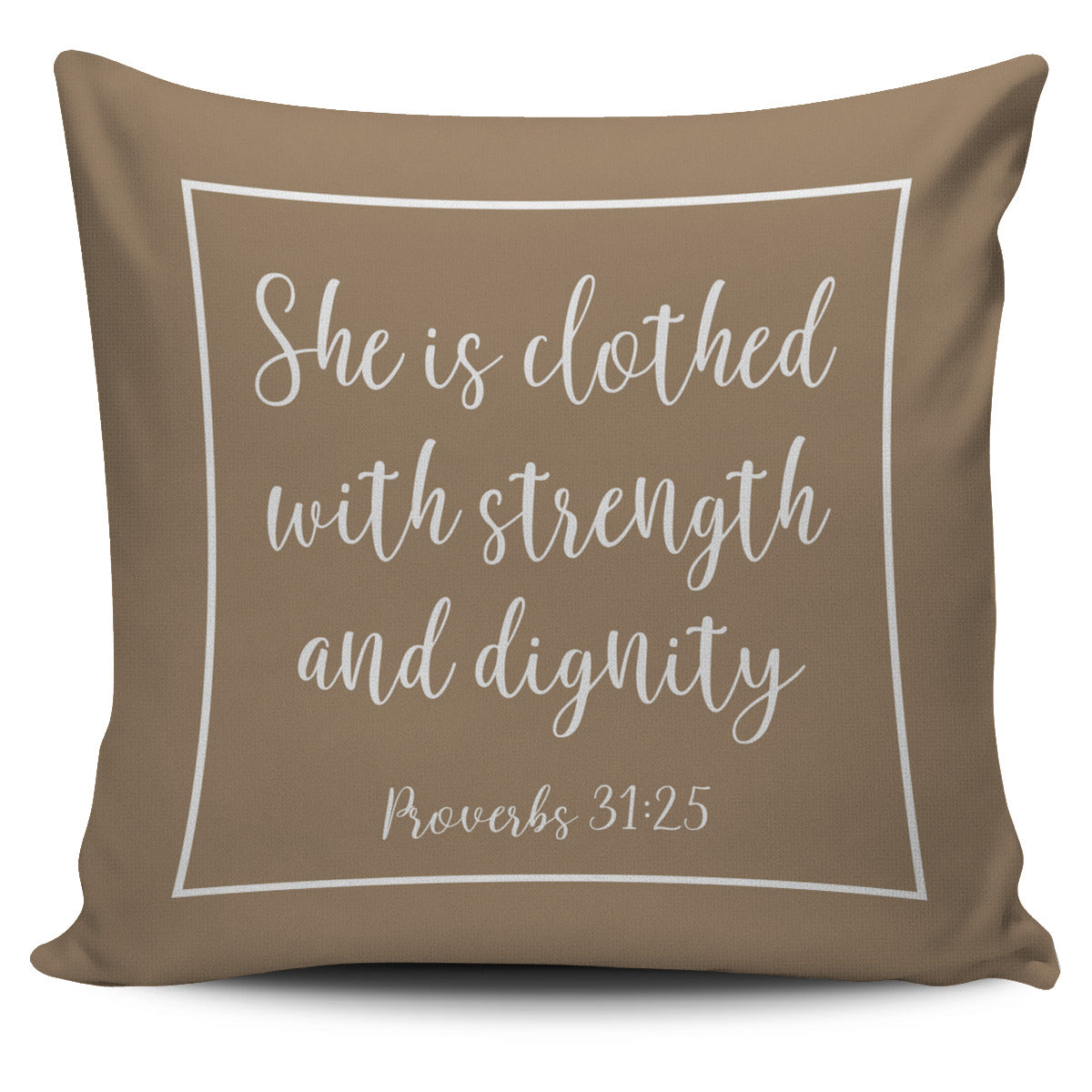 SHE IS CLOTHED WITH STRENGTH AND DIGNITY THROW PILLOW COVER